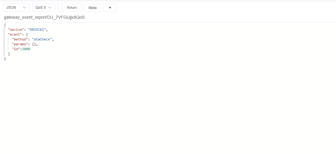 接下来,网关上报子设备的事件,用来检查该子设备是否有新的固件版本可以升级,上报的消息如下:
