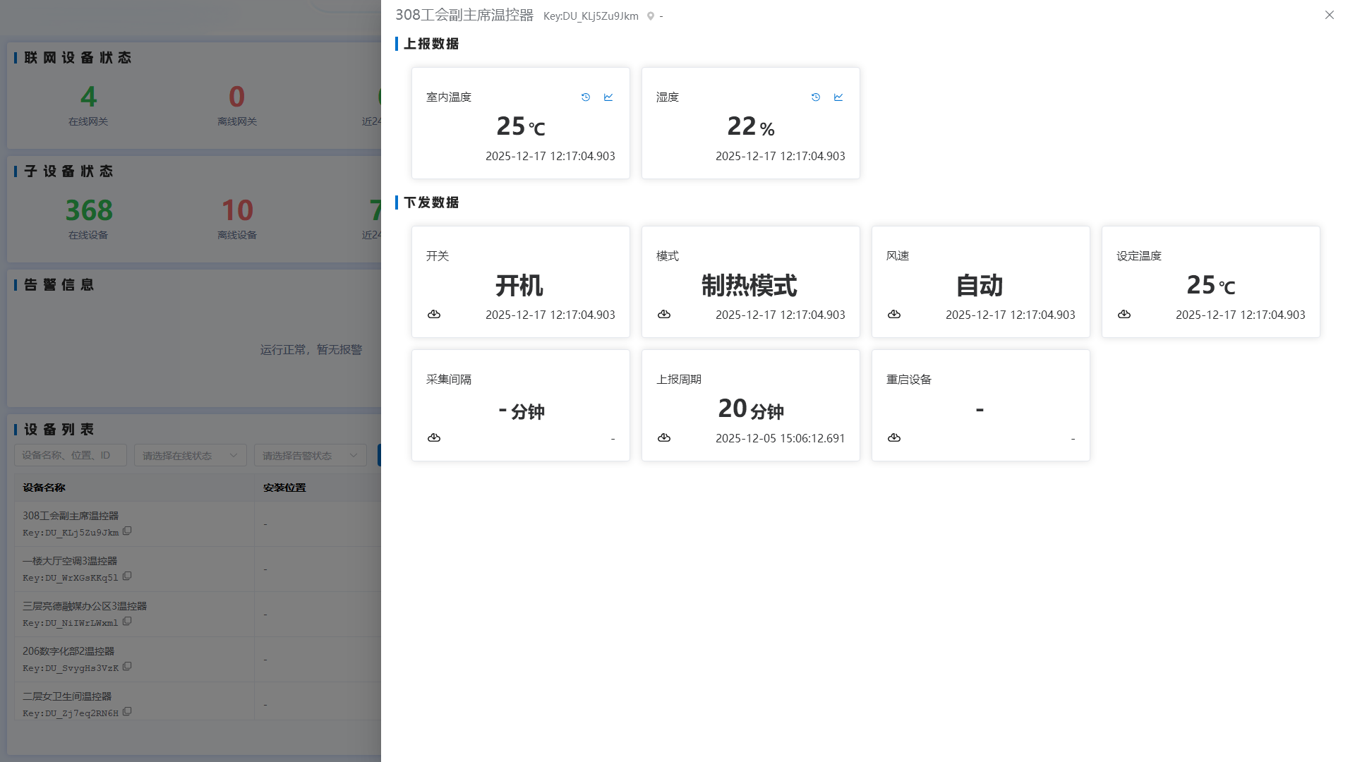 • 详情:弹出设备详情页,可以查看设备实时和历史数据,也可以下发控制