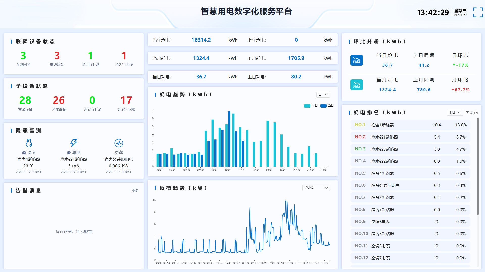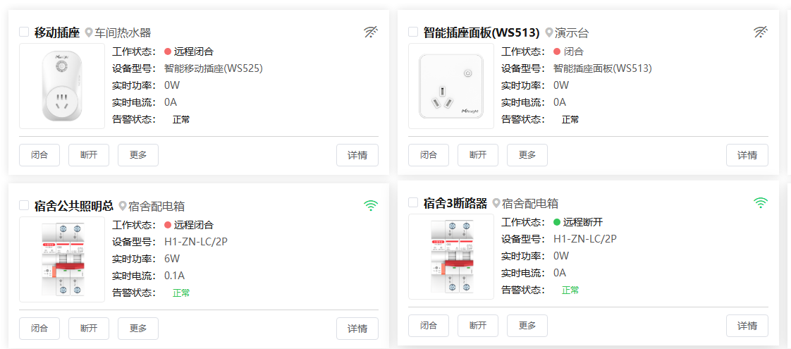 主要用于监测智能空开、智能插座等设备,实现状态监测、批量控制、功率限制、实时和历史数据查看、告警信息查看、能耗排名等