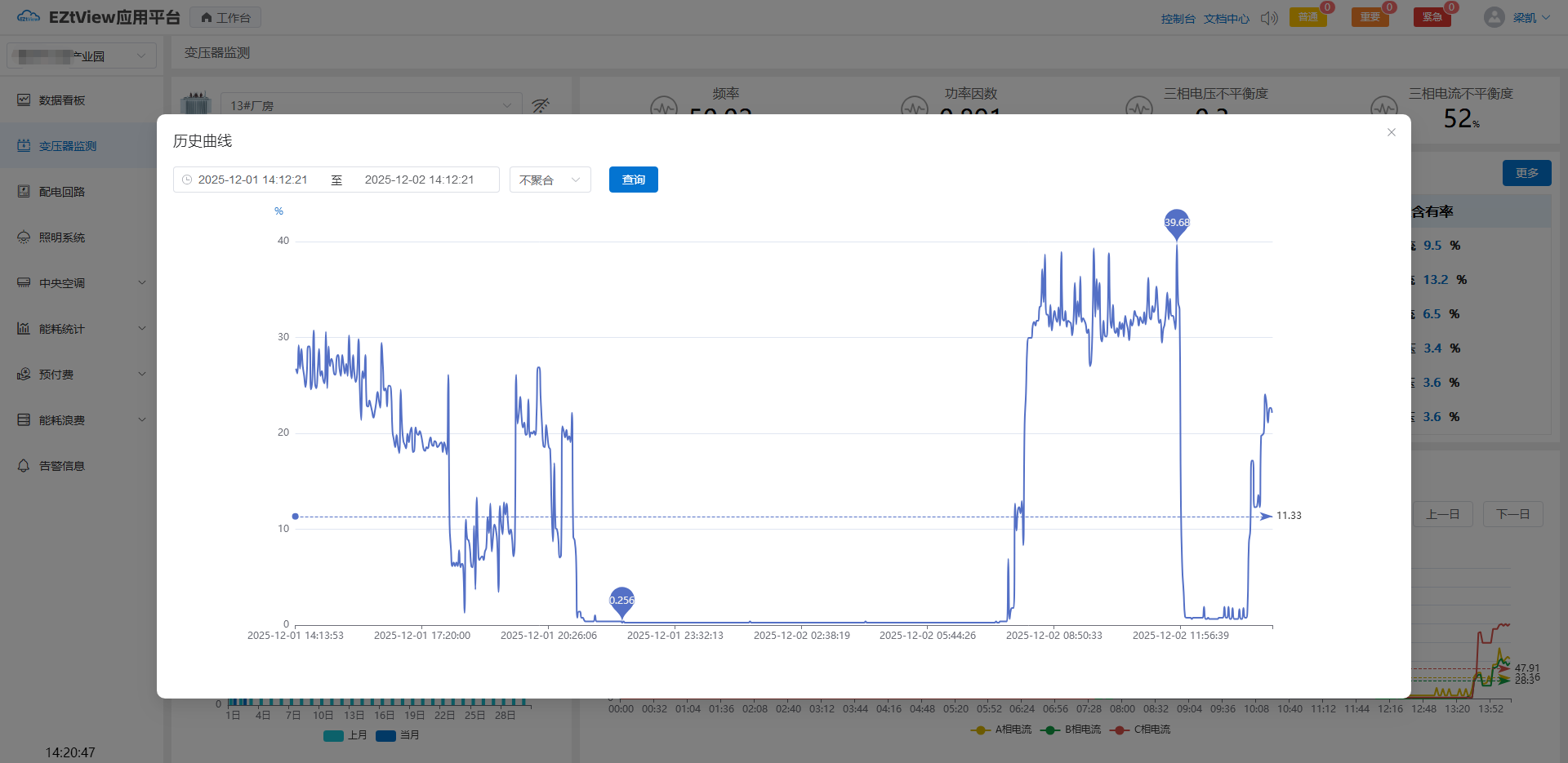 变压器是用电单位重要设备,主要监测内容为变压器铭牌信息、频率、功率因数、电流电压不平衡度、温度、能耗、负载率等。